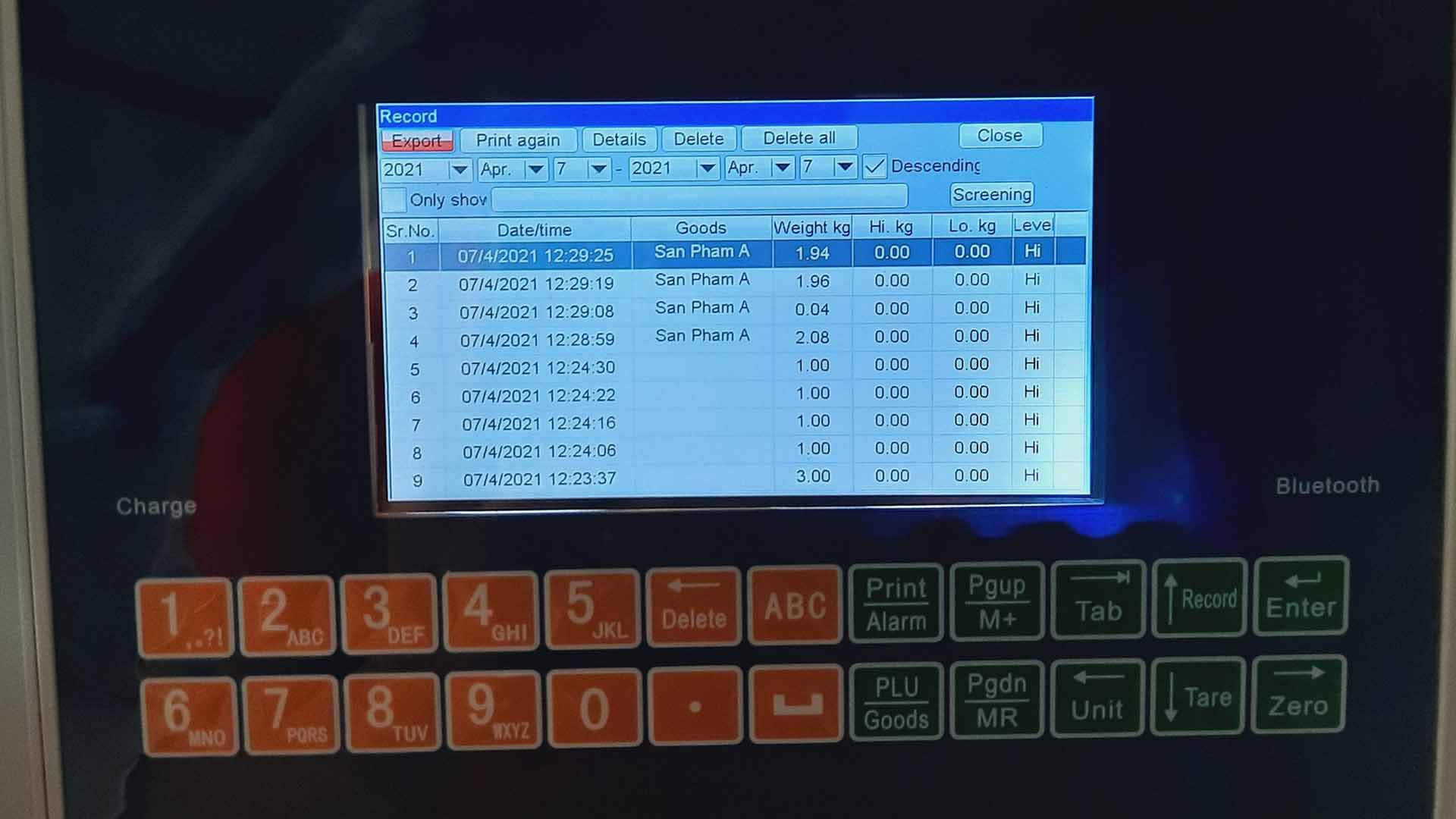 - Cân có khả năng cảnh báo hết ắc quy và sạc đầy ắc quy bằng đèn báo của cân HCT SL-200G45 giúp thông báo cho người dùng sạc pin hoặc ngưng sạc kịp thời để bảo vệ tốt hơn cho tuổi thọ của PIN.