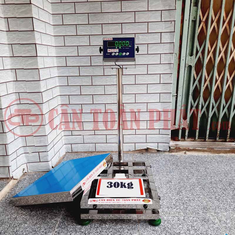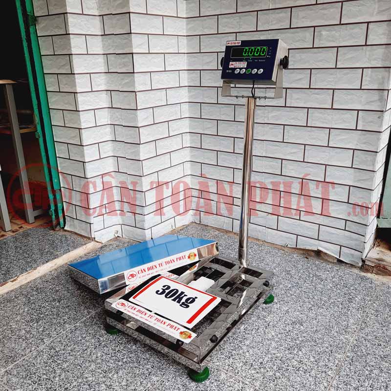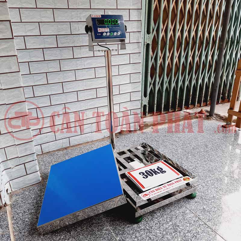 Ảnh thực tế: Mặt bàn cân 40 x 50cm thiết kế toàn bộ bằng inox, siêu bền chống rỉ.