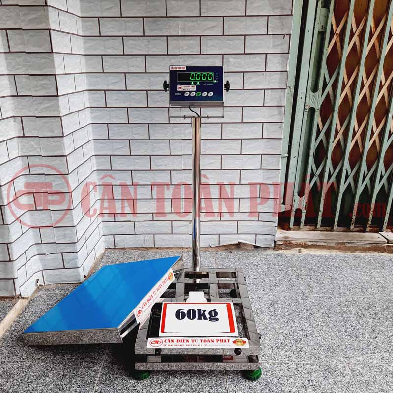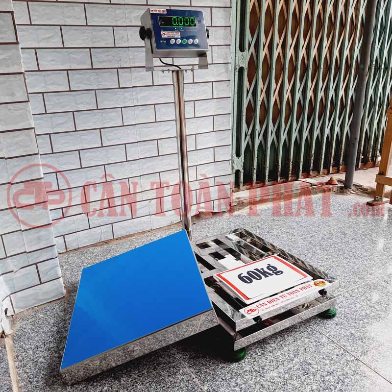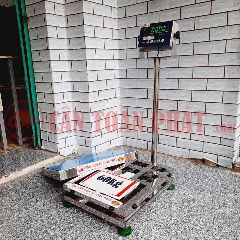 Ảnh thực tế: Mặt bàn cân 40 x 50cm thiết kế toàn bộ bằng inox, siêu bền chống rỉ.